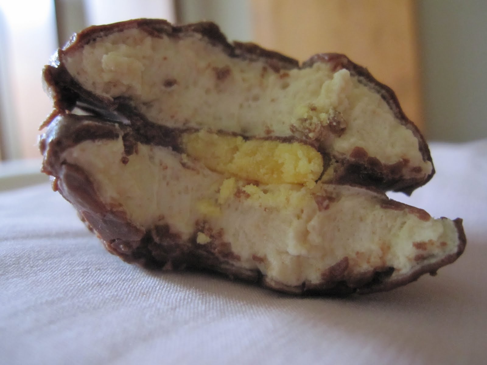It took me one whole day to make the marshmallows, followed by shorter stints over a week or so to chocolate coat them and stick them together. I think they would take an able-bodied person three evenings after work to make them, or maybe two. They look good, taste yummy, took only a week to make a batch of 35 and don't need any ridiculously expensive ingredients or supplies to make. They even have yolks! Success :-)